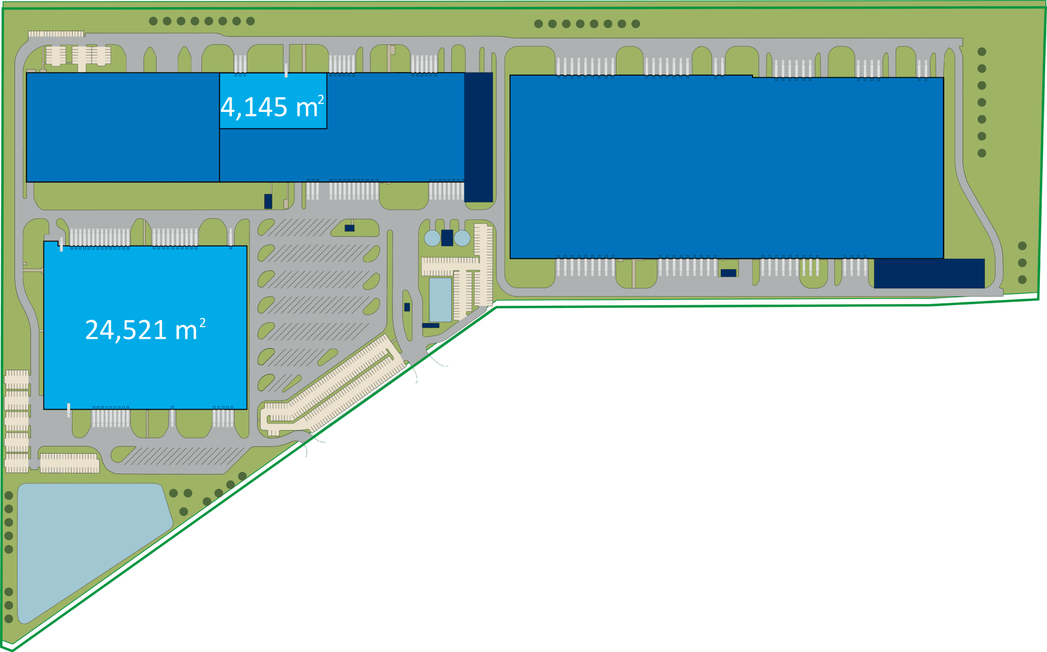 The available units—Building C (24,521 sqm warehouse, 134 sqm office) and Building A2 (4,145 sqm warehouse, 155 sqm office)—feature high storage capacity, modern docks, and ample parking. Each space is designed for operational efficiency, offering flexible layouts that adapt to tenants’ business needs while supporting seamless logistics processes.