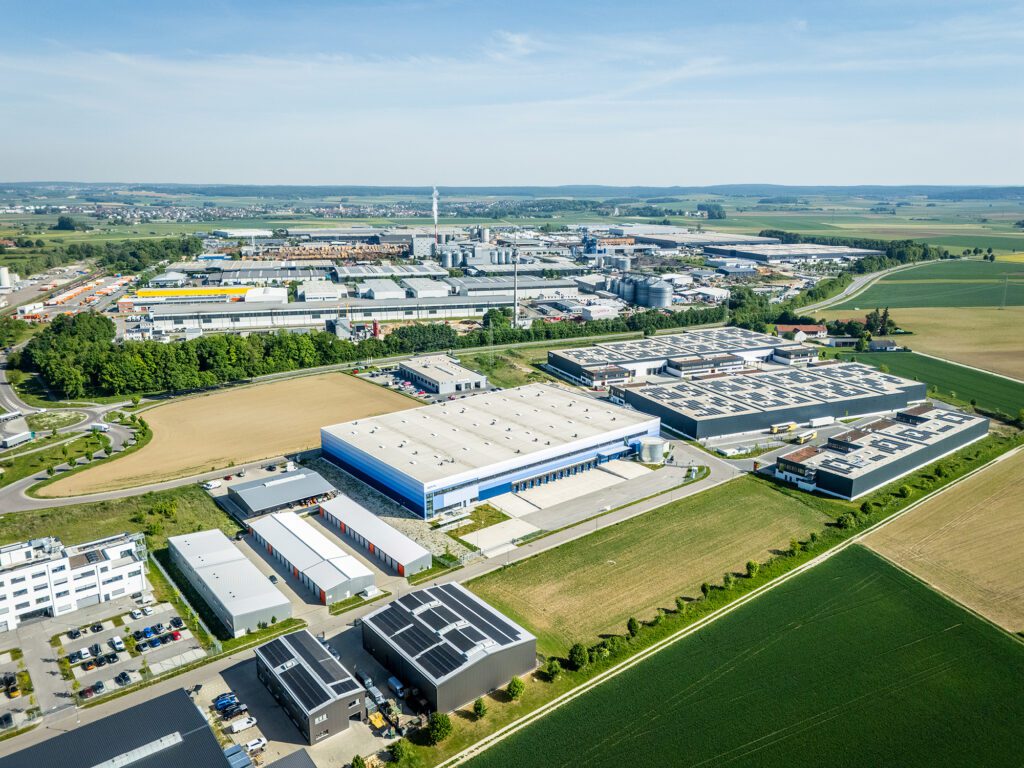 Ingolstadt Logistics Centre is located in InterPark, an intermunicipal industrial zone between Großmehring and Kösching, in the Eichstätt district. It is one of southern Germany’s largest business parks, directly connected to Ingolstadt and within reach of the Munich and Nuremberg metropolitan areas. The site benefits from dual direct access to the A9 motorway (Lenting and Ingolstadt-Nord interchanges) and a dense road infrastructure, making it ideal for regional and national logistics operations.