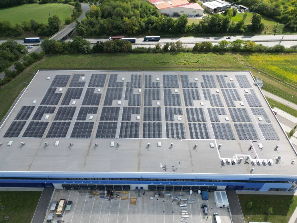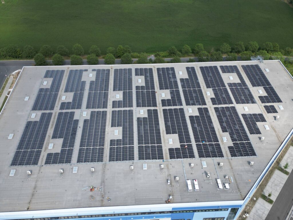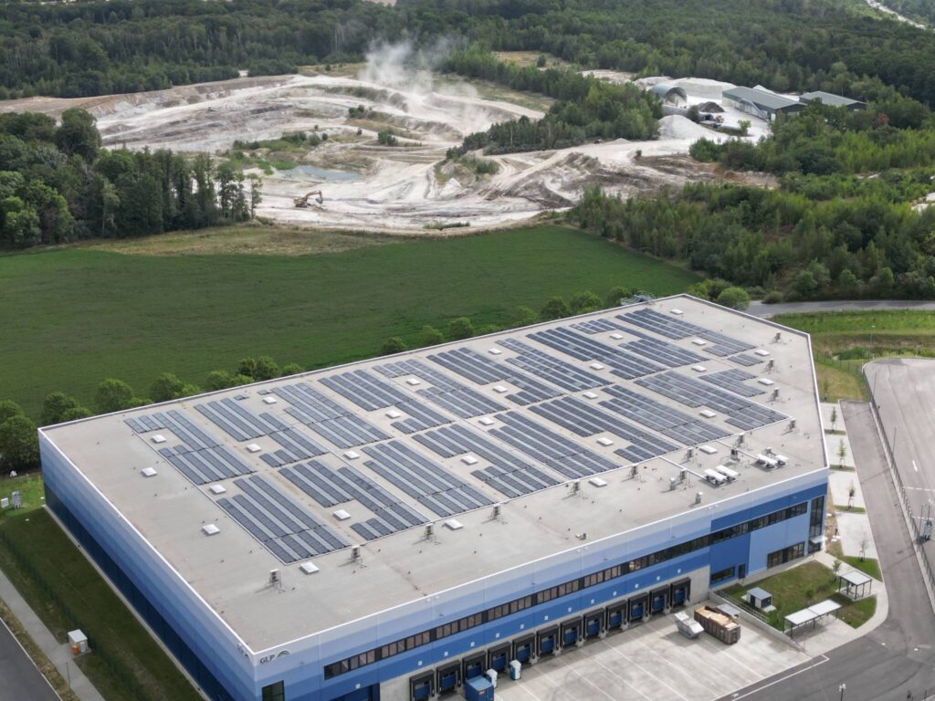 The project is equipped with on‑site photovoltaic (PV) installations with an installed capacity of approximately 2 MWp), generating an estimated 1,882 MWh of renewable electricity annually. During summer months, the PV system can cover up to 100% of electricity consumption of a logistics tenant.