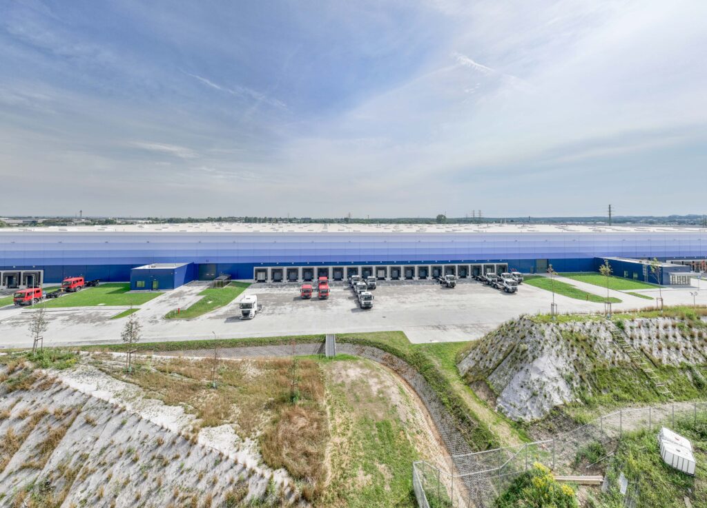 The building offers 56,200 sq m of high class logistics space built in line with GLP Design Standard, featuring clear height of 12 m, loading capacity of 7.5 t/sq m and a solar-ready rooftop. The project also includes carefully designed greenery, relax zones for employees and lorry drivers as well as electric vehicle charging stations.