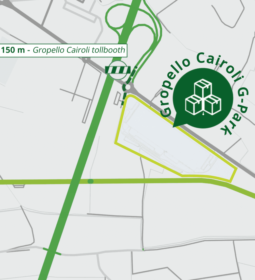 G-PARK Gropello Cairoli è un centro logistico all’avanguardia in grado di rispondere al meglio alle nuove esigenze del mercato. La location si sviluppa su una superficie di 37.670 mq, di cui 35.770 a uso magazzino con 29 baie di carico, un’area di impilaggio di 12m di altezza e una portata del pavimento di 5.500 kg/sqm. L’immobile è suddiviso in due comparti.