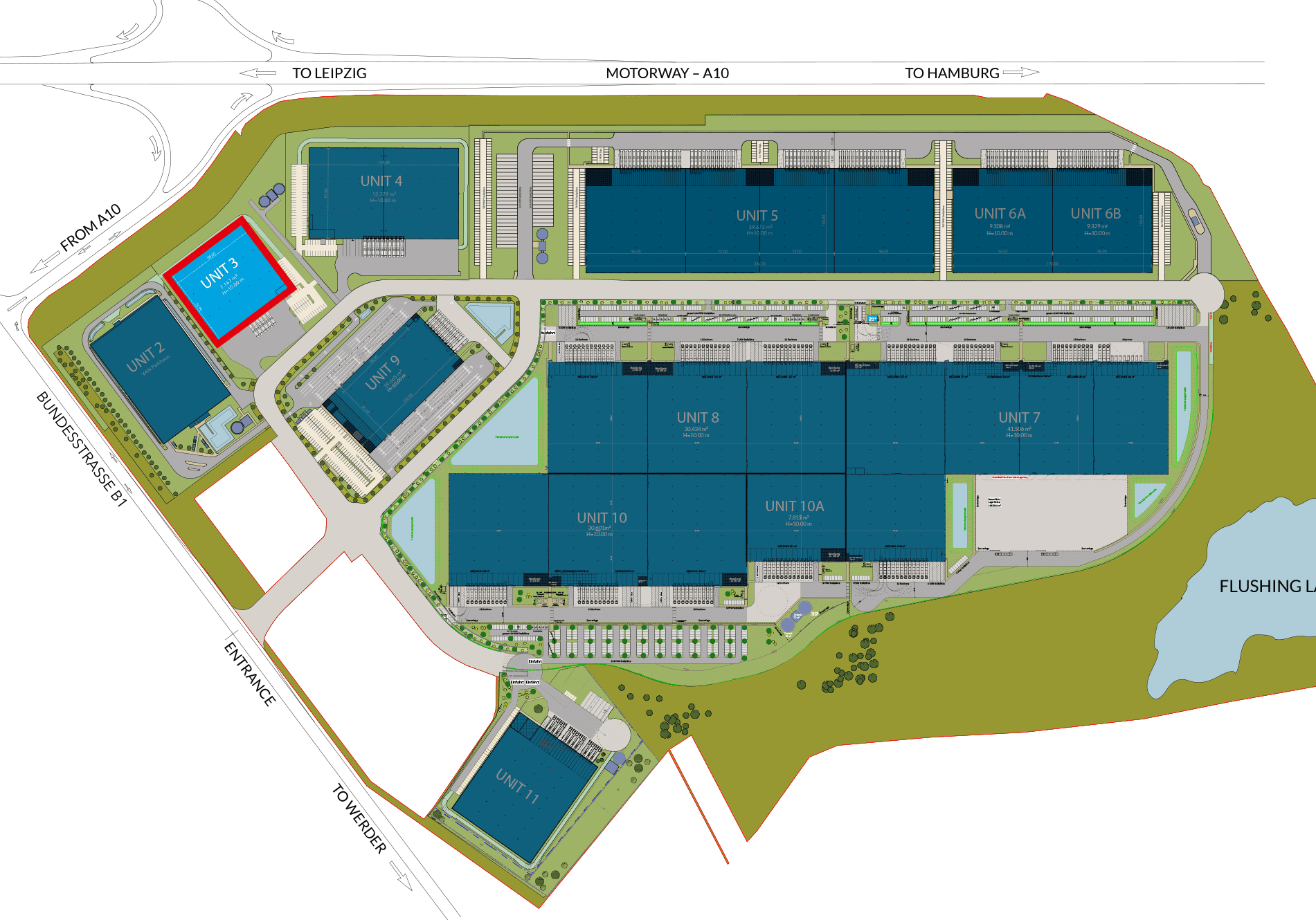 Located in Werder (Havel), southwest of Berlin, Magna Park Berlin-Werder (Havel) offers a strategic position in the Berlin-Brandenburg metropolitan region, with direct access to the A10 motorway and fast connections to the A2, A9, and A24 routes. This location ensures efficient reach to key German and European markets.