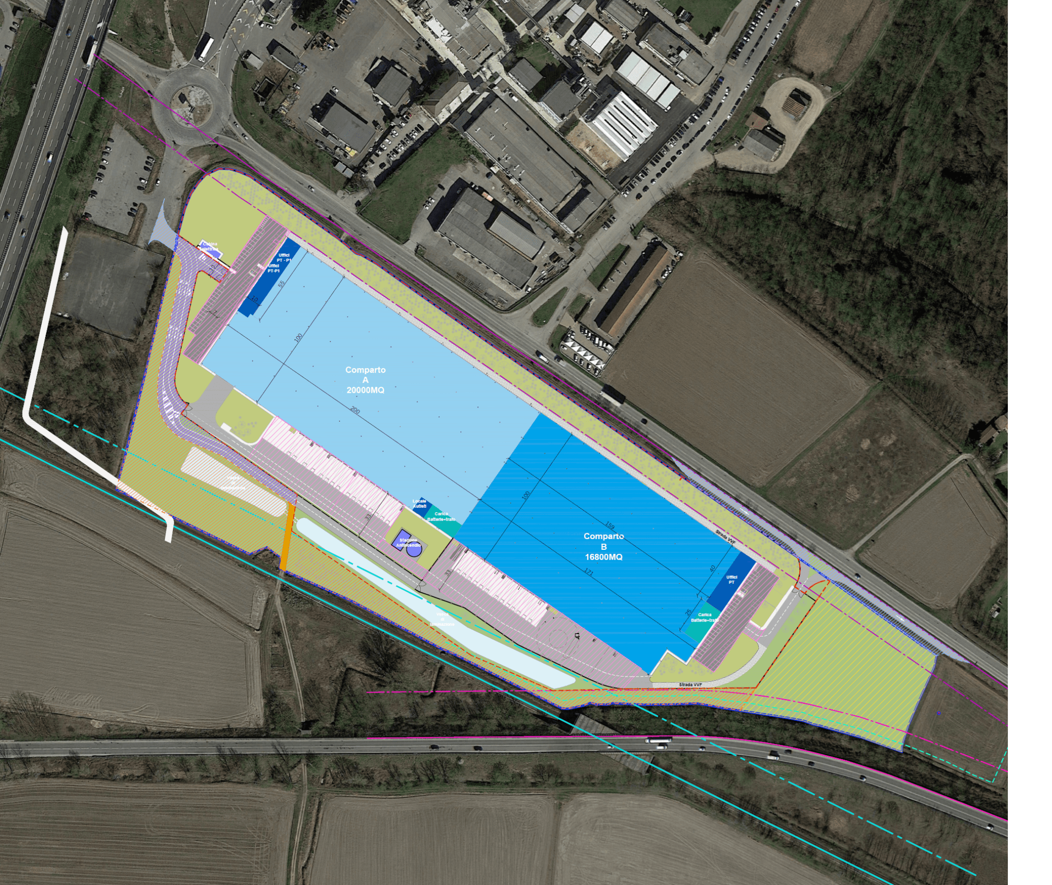 G-PARK Gropello Cairoli is a state-of-the-art logistics center capable of responding to the latest market demands. The location covers an area of 37,670 square meters, of which 35,770 are used for warehousing with 29 loading bays, a 12-meter-high stacking area, and a floor load capacity of 5,500 kg/sqm. The property is divided into two sections. Section B – 16,800 square meters – is available for lease.
