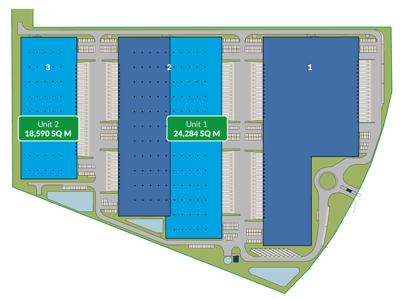 The centre offers warehouse modules starting from 5,000 m², allowing tenants to tailor the space to their individual requirements. A storage height of 10 metres and a well-designed system of loading docks ensure maximum operational efficiency. The facility has been designed to meet the needs of a wide range of businesses seeking functional and flexible warehouse space, with the option of using modern office areas.
