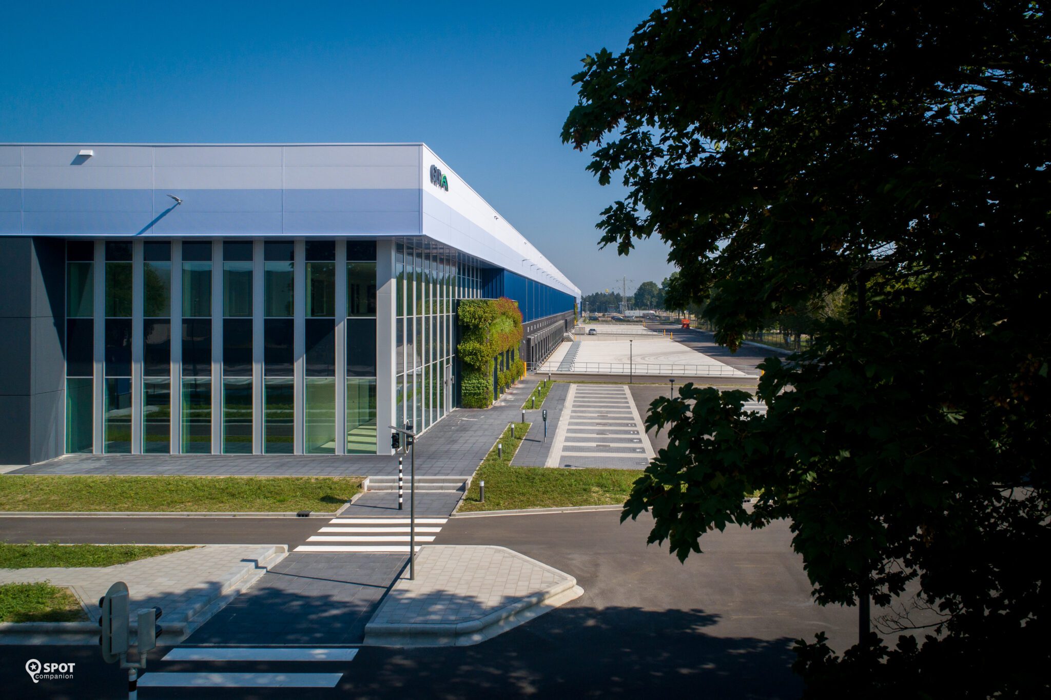 The front green façade was provided to improve indoor air quality and insulated sandwich panels with high thermal resistance were installed. At least 80% of the previous demolished building was re-used as granulated rubble under the building and in the pavements. All materials used in construction were responsibly sourced. The project delivered a BREEAM Excellent rating, scoring 84.1%.